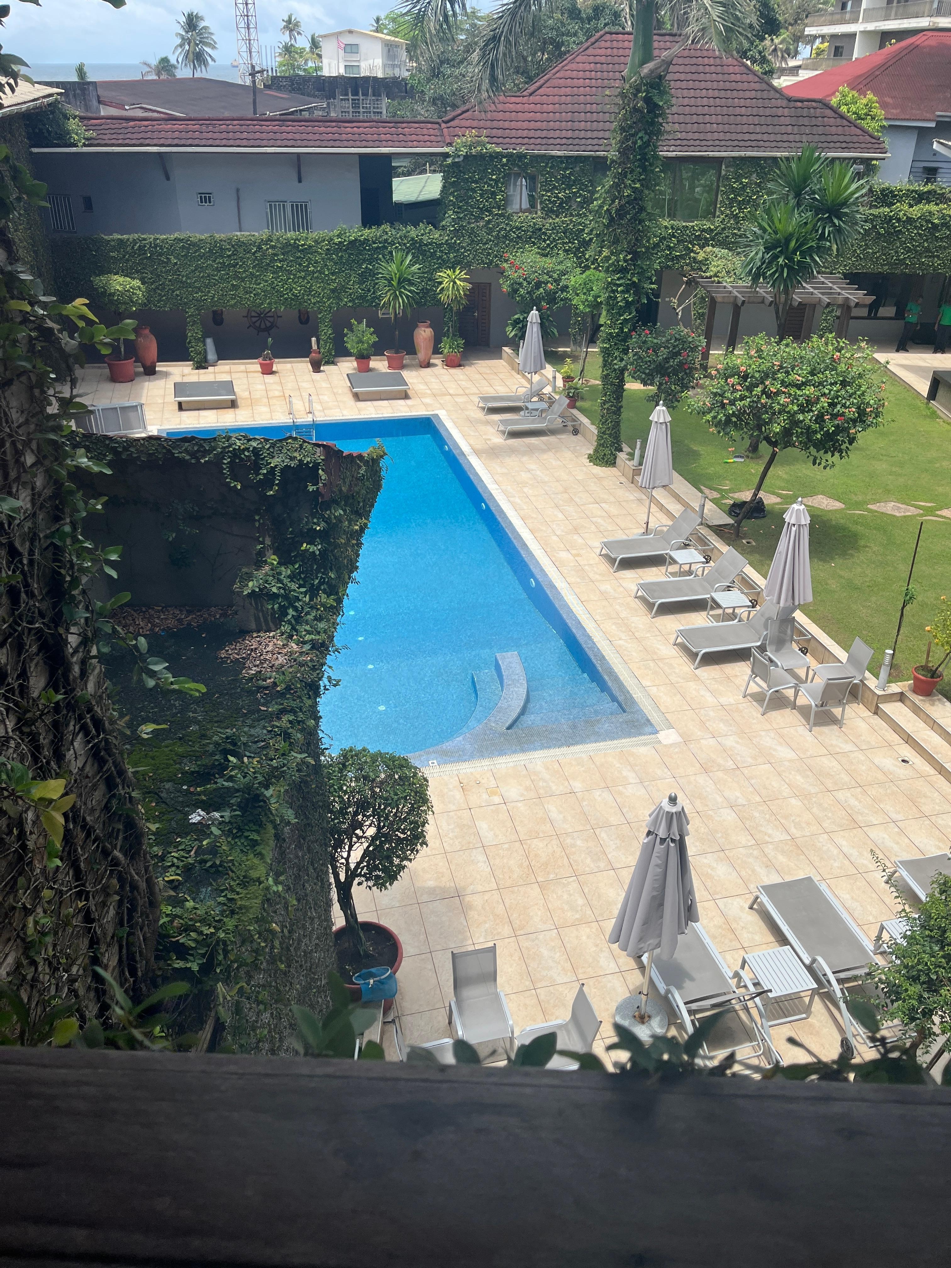 One of the better hotels in Monrovia, has a nice pool area and gym. Buffet breakfast, although having to put on a plastic glove each time you go up there is a real waste of plastic. There's hand sanitiser there also which should be more than sufficient, especially given it's been proven that COVID doesn't really transmit via surfaces.