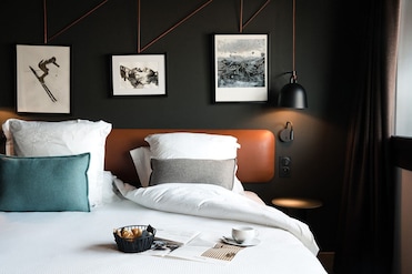 Wrapped in bathrobes, guests drift to sleep on premium bedding. Each guestroom features curated furnishings and a minibar for nightcap indulgence.