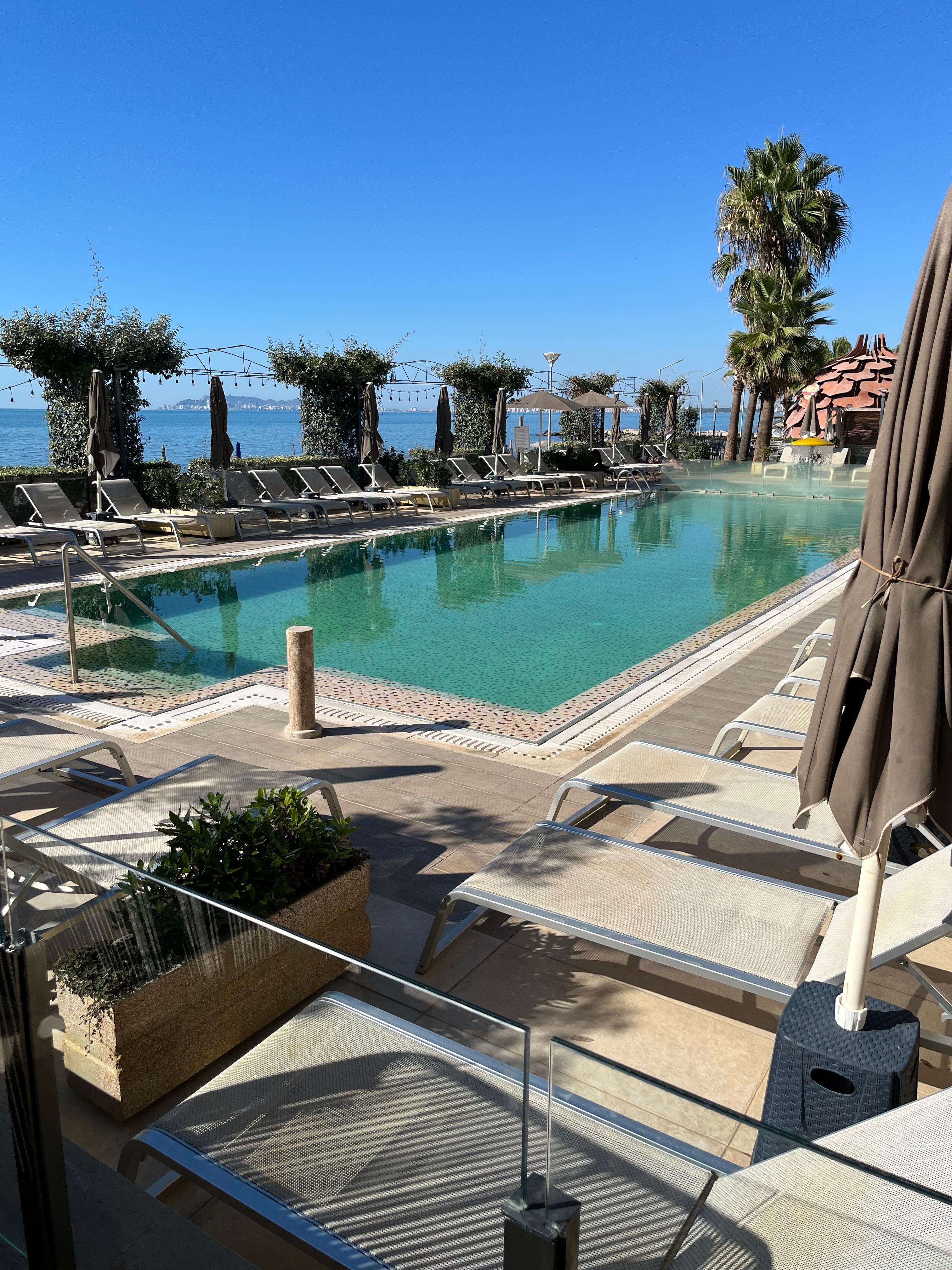 Vi skulle ankomme natt til lørdag, hadde ringt og gitt beskjed til hotellet, da vi ankom sto de klar og vi fikk nøkkel og kunne gå rett opp og i seng. Vi opplevd veldig hyggelig personale, foruten den ene resepsjonist, hun var ikke serviceminded. Men ellers var alle søte og smilende. Vi spurte om det var mulig å sjekke ut seint, skjønner at de skal gjøre rommet klar for andre (det var snakk om 3t fra utsjekk til vi skulle reise), fikk beskjed om at vi kunne betale 70€ (noe jeg synes var helt vildt for 3t, for at vi kunne ha våre ting stående og ta en dusj før avreise) så vi droppet det og fant en løsning med å dusje ved doene som hørte til poolen, noe som gikk greit, men vannet var kaldt og det var litt mye styr. Aldri opplevd før å ikke kunne sjekke ut sent andre steder. Frokosten var helt greit, man skal være oppmerksom på at du ikke får brød og sånn ting. Men jeg synes det var veldig godt og spennende. Vi spiste middag på hotellet den ene kvelden og det var utrolig lekkert, og prisen var 👌 Det lå et pizzaria rett overfor hotellet som vi spiste lunsj fra og middag den ene kveld. Det var helt perfekt. Vi kjøpte smultringer (nylaget) med sjokoladesaus og jordbærsaus fra en vogn da gikk rundt på stranden. Det var en super snack til den søtetann. Det lå også en liten butikk rett overfor hotellet som hadde alt du ellers hadde behov for. Så alt i alt et fantastisk opphold og anbefales