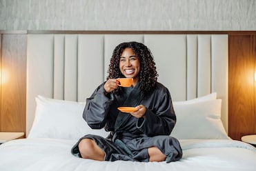Wrap up in plush bathrobes after slipping between premium sheets on a pillowtop mattress. Turndown service and a stocked minibar elevate the experience.