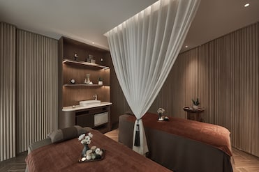 The spa features treatments, massages, and facials in dedicated rooms. A sauna, steam room, and fitness space complete this relaxation haven.