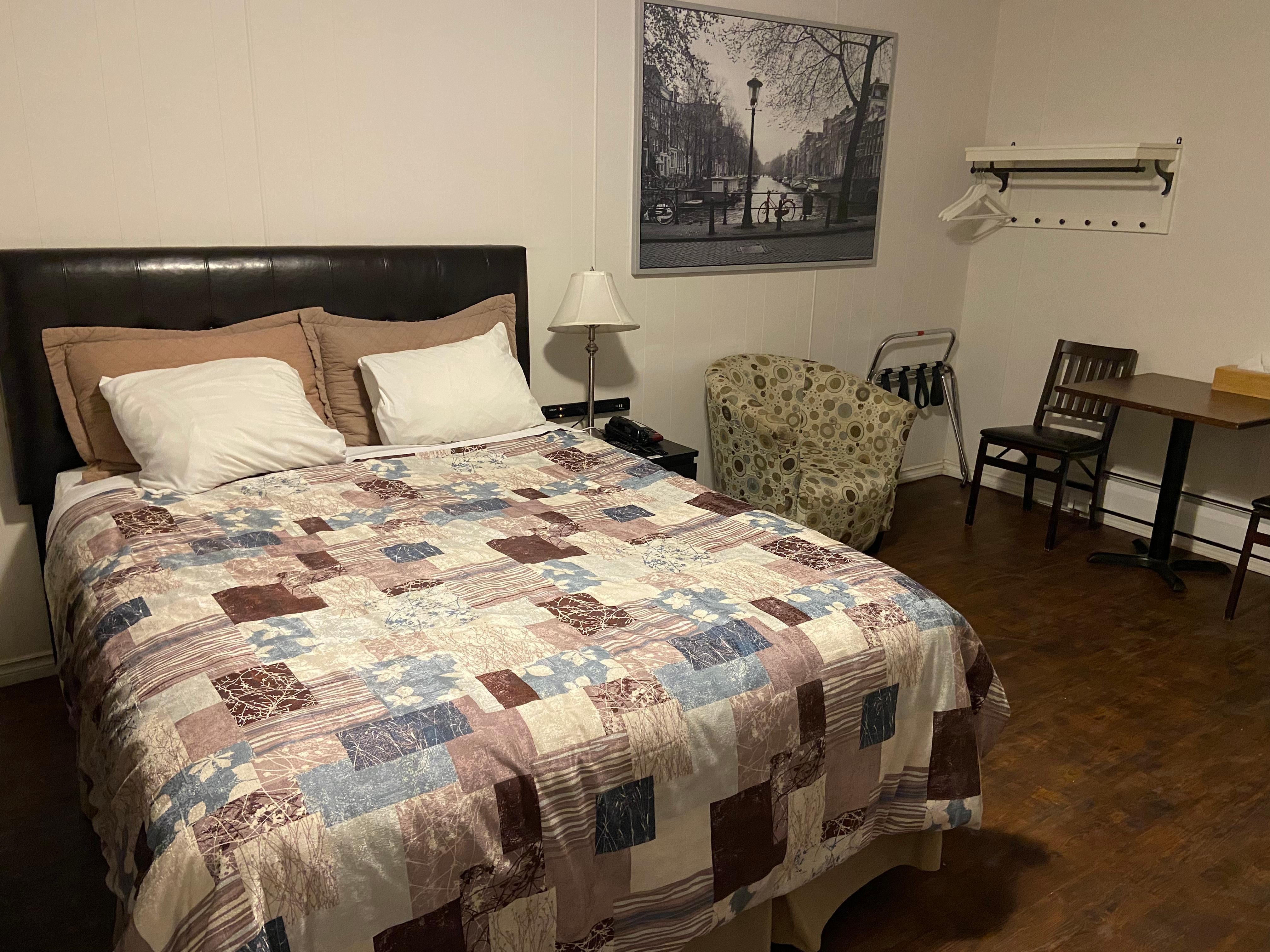 The room I stayed in was simple but pleasant. The bed was very comfortable. When I arrived, the room smelled clean. It was very pleasant. I just needed a place with a roof over my head for the night and this Lodge surpassed my expectations. For the comfort of the bed, I would stay here again without a doubt.