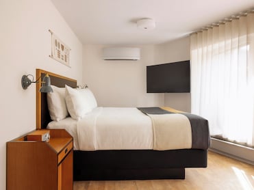 Every guestroom features hypo-allergenic and premium bedding options. A pillow menu and blackout drapes ensure restful sleep for guests.