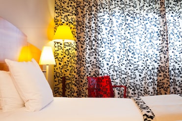Premium bedding and blackout drapes create a perfect environment for deep slumber. Each guestroom boasts curated, individual decor for a unique stay.