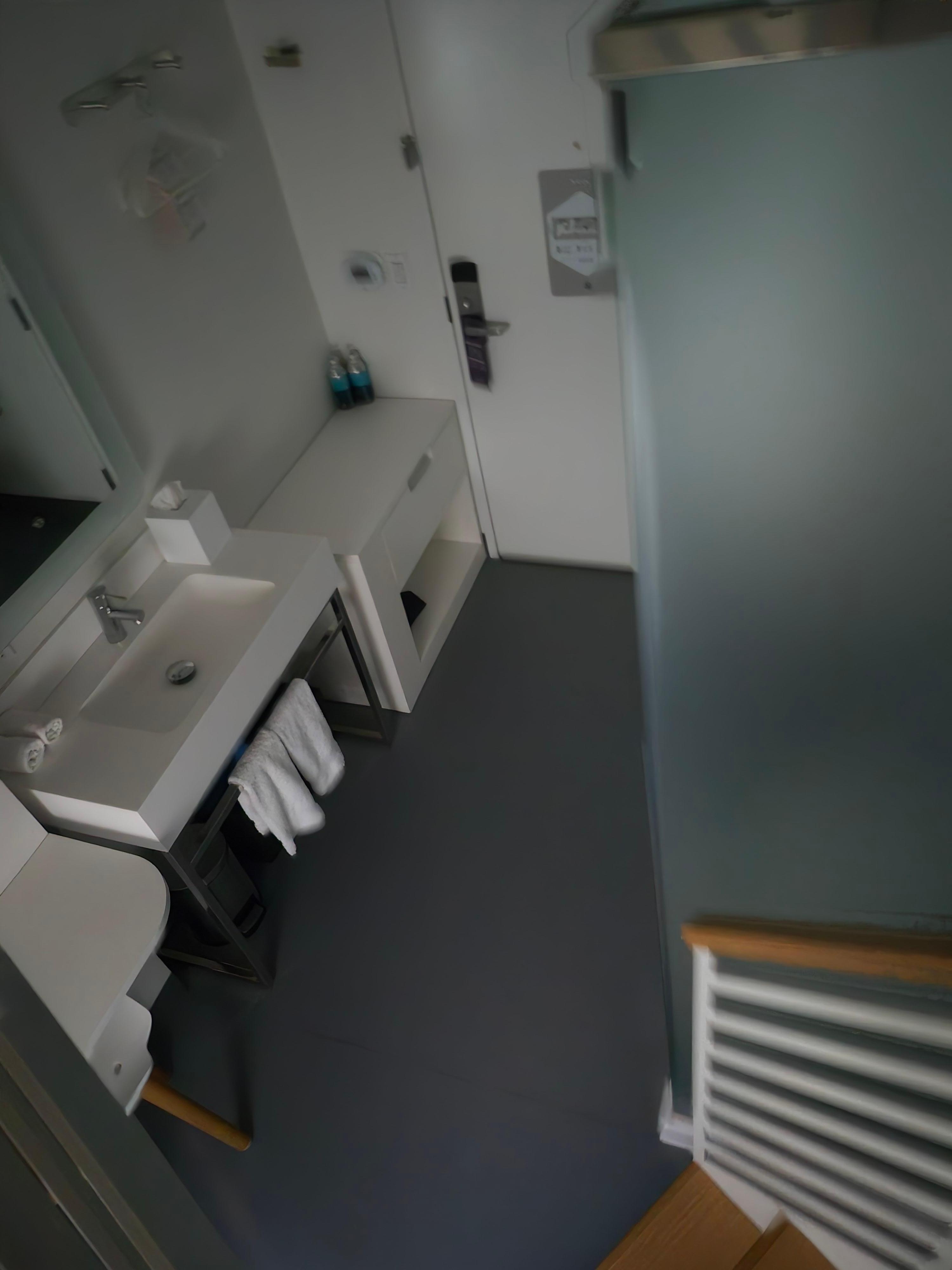 Room was tiny. Nice to have a towel warmer, but accessible from shower so towel got cold before it could be used.